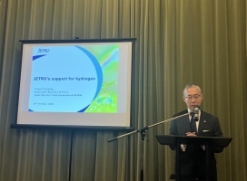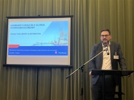 Zu Beginn verwies Generalkonsul Shinsuke TODA auf die verschiedenen Bereiche der Zusammenarbeit im Wasserstoffsektor, die zwischen Japan und Norddeutschland besonders weit fortgeschritten sind. Er bedankte sich bei den Beteiligten und betonte die Bedeutung der Fortsetzung der Zusammenarbeit beider Länder in diesem Bereich.